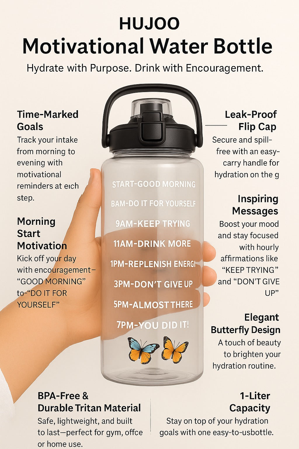 Make every sip count with HUJOO – Hydrate with Purpose. Drink with Encouragement.